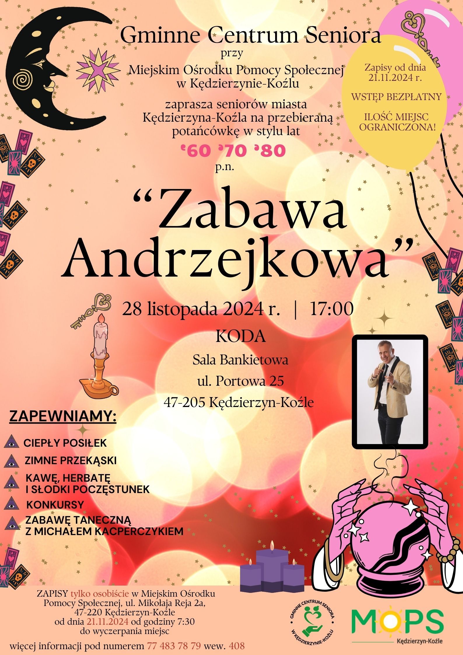 Gminne Centrum Seniora przy Miejskim Ośrodku Pomocy Społecznej w Kędzierzynie-Koźlu, serdecznie zaprasza Państwa do zapisów na najbardziej magiczną "Zabawę Andrzejkową" w mieście, która odbędzie się: